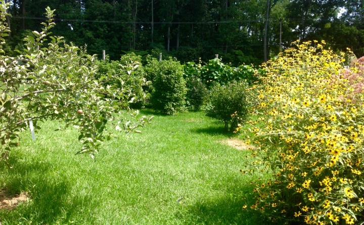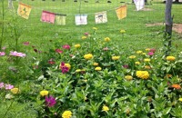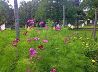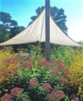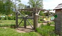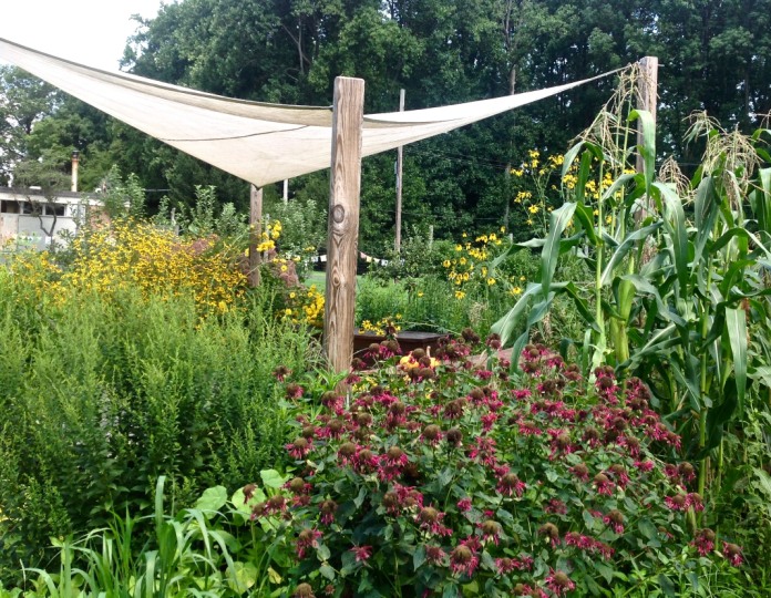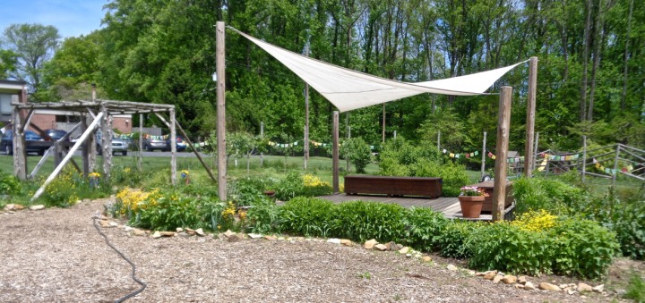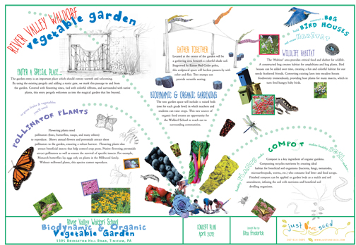 Designing the school garden at the River Valley Waldorf School in Upper Black Eddy, PA was as much fun as watching it grow. Raised garden beds spiral around a central shade flag area used for class meetings. The garden includes a small orchard, native plants for wildlife, compost areas, pollinator flower beds, and a small garden shed.