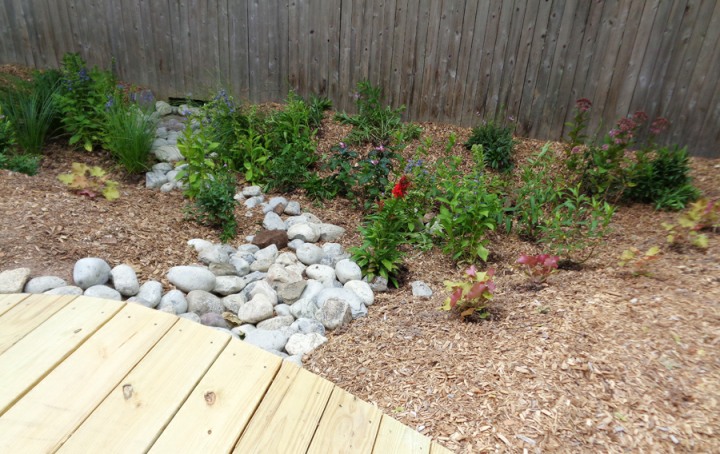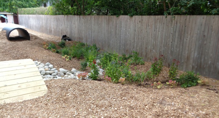At the United Friends School in Quakertown, we designed and installed a rain garden on the playground. This has been a great success -