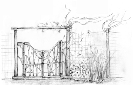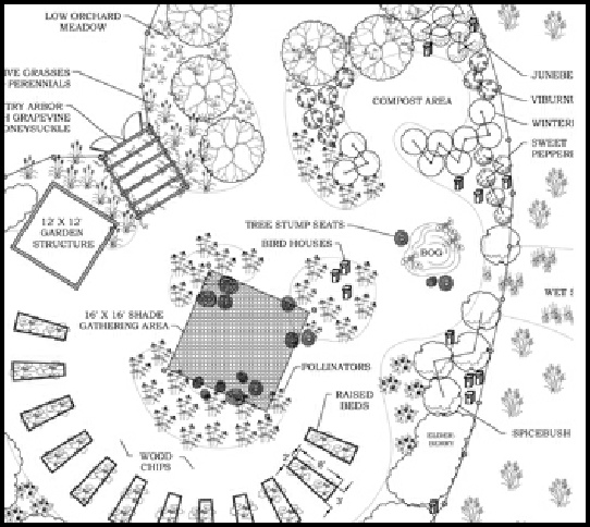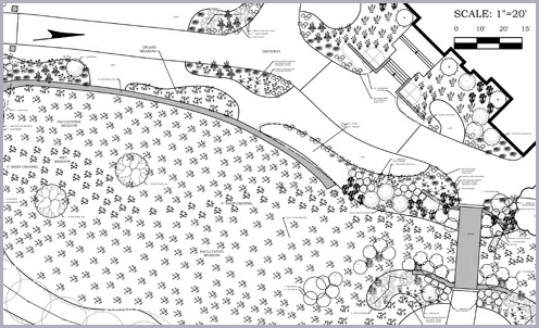 Gardens surrounding the home call for ornamental cultivars of species seeded in the rain garden. Thus, the transition from an orderly and more formal layout around the large home is in harmony with the meadow-