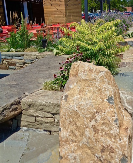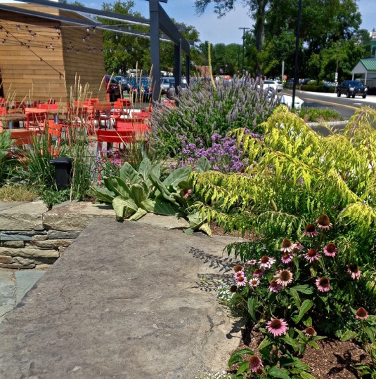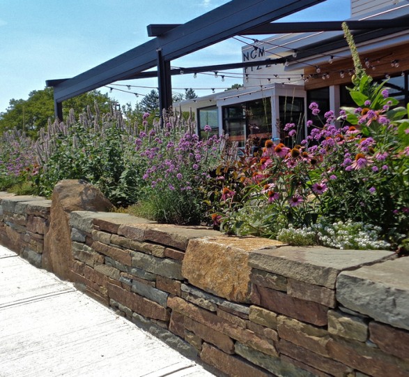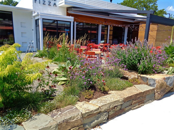 Installed in the spring of 2016, these gardens at Nomad Pizza in Princeton, NJ offer diners a banquet of color and texture during all seasons.